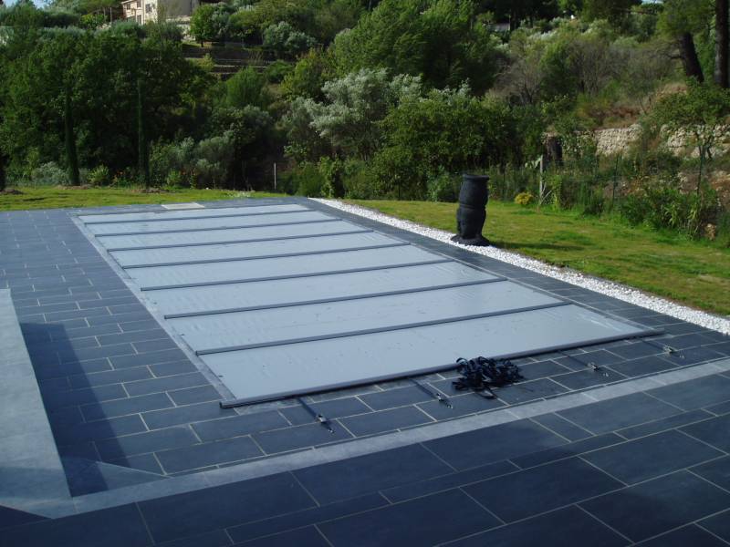 Pour la sécurité des enfants,il existe plusieurs modèles de bâche à barre.Facile d'installation et d'utilisation(elle peut enroulée manuellement ou avec un enrouleur électrique ),discrète,une fois fermée cette bâche bloquera l’accès de la piscine à vos jeunes enfants. A la norme NF P 90-308 ,la bâche à barre est utilisée tout aux long de l'année. En plus de la sécurité,cette solution permet d'éviter une trop forte déperdition de chaleur les nuits fraîches du printemps à l'automne.Laissant l'eau de votre piscine dans le noir,la bâche à barre limite les problèmes liés à la photosynthèse et bloque les feuilles et autres impuretés apportées par le vent. Avec un choix de plusieurs coloris,vous pourrez protéger vos enfants et votre piscine tout en conservant la beauté de votre jardin.