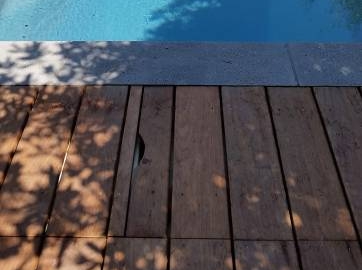 Le liner couleur gris anthracite apporte à la fois un aspect moderne et naturel d'un vieux bassin.