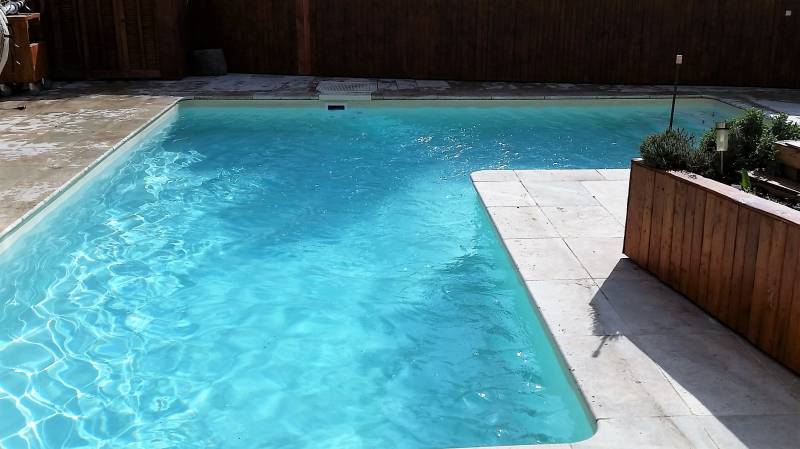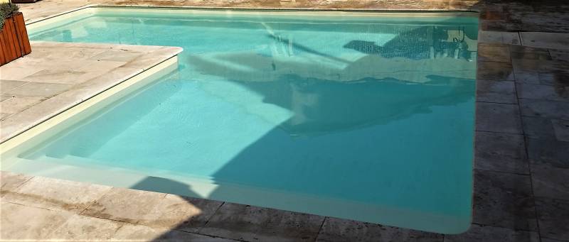 Les plages et les margelles sont en travertin.