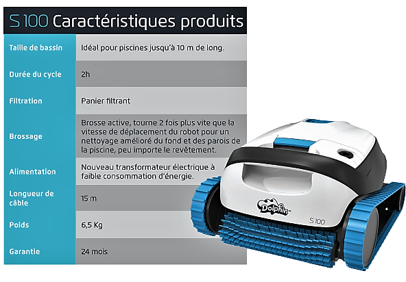 revêtements de piscine.Son nouveau transformateur électrique est à faible consommation d'énergie et son panier filet ,qui retient aussi bien des grosses que des petites particules, est facile à nettoyer.